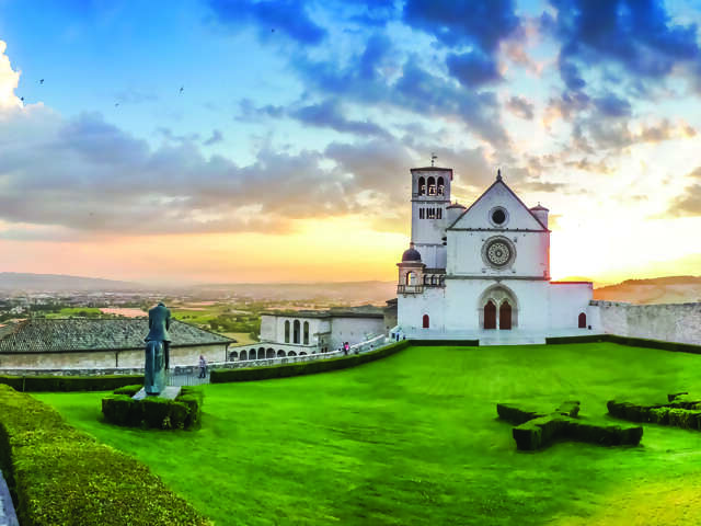 Travel north to Assisi, where St. Francis spent most of his life. Visit St. Mary of the Angels Basilica, built on the founding site of the Franciscan Order. Pause at the Chapel of the Porziuncola, the rose bush, and the cave where the saint prayed. Spend time at the Church of St. Clare before reflecting at the crucifix from which Jesus spoke to St. Francis. Join a local expert on a tour of Assisi, highlighting the 13th-century basilica where you can see many of St. Francis’ possessions and a series of frescoes. Celebrate Mass in the Basilica of St. Francis this afternoon.