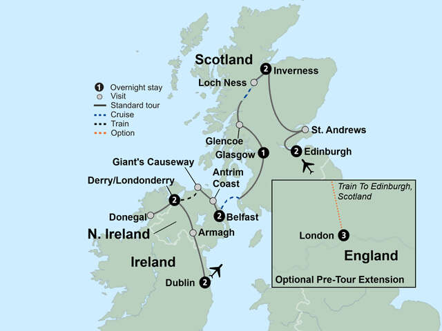 Bask in the warm Celtic culture and majestic scenery of two remarkable lands. Come to know the regal city of Edinburgh on a panoramic coach tour or by foot – it’s your choice! Learn the secrets of making Scotch whisky and enjoy a tasting. Cruise famed Loch Ness and explore the ruins of Urquhart Castle. Enjoy a traditional evening of Scottish food and entertainment. Visit the Titanic Experience in Belfast and remember the century-old tragedy that shook the world. Walk the Giant’s Causeway (UNESCO) and soak up incredible views of the Causeway Coast, one of the world’s most breathtaking rail journeys. Visit Ireland’s bustling capital city of Dublin and tour historic St. Patrick’s Cathedral. From rugged natural beauty to vibrant and historical cities, the diverse charms of Scotland and Ireland await.