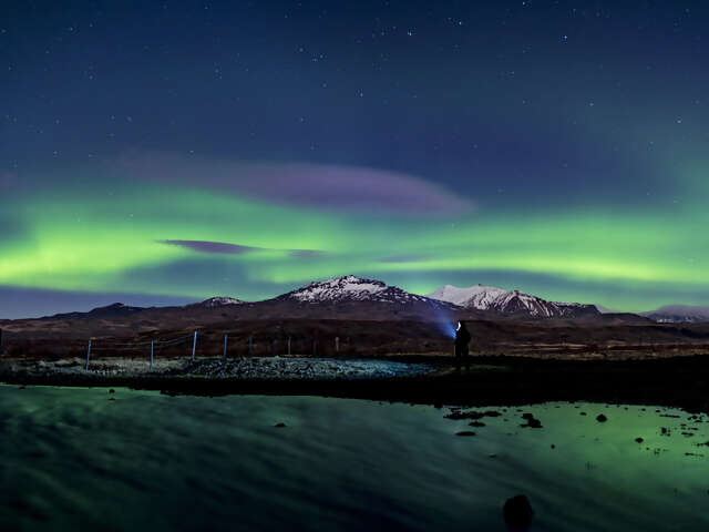 This morning, travel the Golden Circle to experience natural wonders, including the explosive Geysir thermal area and the double-cascade Gullfoss waterfall. You’ll also experience the famous Thingvellir National Park, where you’ll stand upon the crest of the Mid-Atlantic Ridge. In the afternoon, stop at the Lava Exhibition Center and delve into Iceland’s past and present volcanic eruptions. Afterward, witness Seljalandsfoss, a rushing waterfall where you may walk behind the water for unique views from the inside out. Next, continue onto Vík. Drive or venture on foot into the stillness of rural Iceland in search of the northern lights. You’ll enjoy three nights of searching to increase your likelihood of catching a glimpse of these elusive lights.*