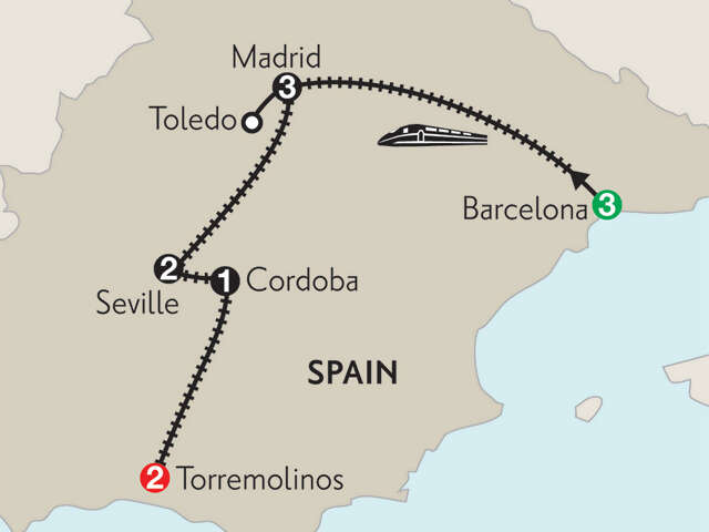 “Lady of Spain, I adore you. Right from the night I first saw you.” We’re sure you’ll be joining Bing Crosby and Eddie Fisher in singing these lyrics when you return from this 12-day vacation to Spain—you may even be inspired to grab an accordion and sing along! That’s because Monograms has made it easy for you to travel to Spain. We’ve arranged your hotel reservations, daily breakfast, sightseeing, transportation between cities, and transfers from/to your hotels to/from the train stations. Plus, a one-of-a-kind feature is the Monograms Local Host®, someone who is there for you throughout your stay to answer questions, share little-known secrets, help you personalize your trip, and help ensure your vacation runs smoothly. You’ll have a Local Host in each city, so you’ll have someone to help you feel at home and at ease. Your vacation begins when you arrive in Barcelona, Spain’s second-largest city. We can pick you up at the airport and take you to your hotel, where your Local Host will be waiting for you with a set of materials to help familiarize you with the city. The next morning, after an included breakfast, we’ll pick you up at your hotel for guided sightseeing. Hear the inside stories and fascinating details of the must-see attractions, and visit works by the famous architect Gaudí, including Casa Batlló and the unfinished La Sagrada Familia Basilica. A day at leisure in Barcelona gives you time to explore on your own (with the support of your Local Host, of course). You may want to take an excursion to Montserrat with its unique natural park and 1,000-year-old Benedictine monastery, visit the Camp Nou football (soccer) stadium, or relax at the beach.Then, it’s off on the high-speed train to Madrid, where your guided sightseeing with a local expert features the Prado Museum, where you’ll see the world’s finest collection of European art by masters such as El Greco, Velázquez, and Goya. From Madrid, we’ll also take you on an excursion to Toledo, where you’ll visit an early synagogue, the 13th-century Gothic cathedral, and the Church of Santo Tomé, home to El Greco’s painting The Burial of the Count of Orgaz. From Madrid, you’ll travel once again by high-speed train to Seville, where we’ve arranged for you to enjoy guided sightseeing with a local expert. You’ll hear the inside stories of must-see attractions, such as the university that used to be the tobacco factory of Carmen fame. We’ll take you to the Santa Cruz Quarter and to Seville’s Alcazar, founded in the 11th century as a Moorish fortress. A full day in Seville will also give you the opportunity to explore on your own. Your Local Host will have suggestions and can help arrange the activities you desire, such as a Flamenco show or a cruise on the Guadalquivir River. Next up is Cordoba for one night. Here, we’ve arranged for you to have sightseeing with a local expert. You’ll see the city’s Alcazar (royal castle), the Roman Bridge, and the medieval Jewish Quarter. You’ll also visit the Mosque of the Caliphs, built in the 8th century. Finally, after all this exciting sightseeing and time spent in the cities, there’s time for relaxation. Like we’ll do in each city, we’ll pick you up at your Cordoba hotel, take you to the train station, and get you on the correct train. You’ll journey to Malaga, where we’ll pick you up at the train station and take you to your hotel in the resort town of Torremolinos. Here, you’ll relax and have time to explore. You may want to visit the local amusement park, take a trip to the botanic gardens, stroll along the Costa del Sol’s extensive beaches, or just relax and sample the seafood restaurants for which this area is famous. Be sure to ask your Local Host for suggestions on where to go.And did we mention that your train travel will be first-class on Spain’s high-speed trains? Between the transfers and transportation we’ve included, the sightseeing and guides we’ve arranged, and the hotels we’ve booked, all you have to do is have fun. Add the comfort of knowing you’ll have a Local Host in each city to help you navigate, translate if needed, and feel at ease, and you’ve got yourself a vacation that is more like a fiesta.