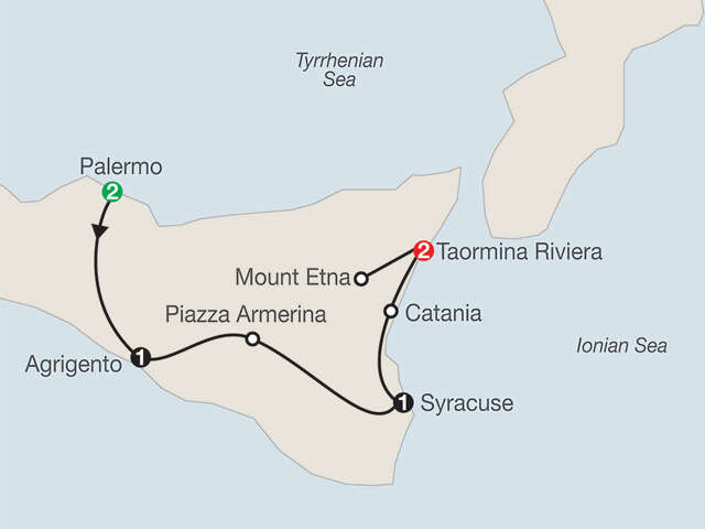 Full buffet breakfast daily; 3 three-course dinners with wine including a welcome dinner in Palermo and a farewell dinner in Taormina