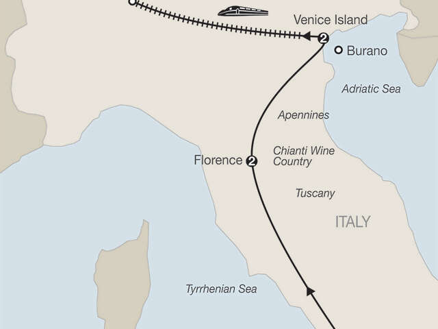 ROME A special welcome dinner at a local restaurant; guided sightseeing, visit the Colosseum and Roman Forum, the Vatican Museums and Sistine Chapel, St. Peter’s Square and BasilicaFLORENCE Guided walking tour, visit Michelangelo’s David and Signoria Square; [LF] a special dinner at Finisterrae restaurantVENICE Private boat ride, guided walking tour, visit St. Mark’s Square and Basilica, Doges’ Palace and the Bridge of Sighs; glassblower demonstration with exclusive gift; [LF] farewell drink at Caffé FlorianVENICE ISLAND-LAKE MAGGIOREby high-speed Eurostar TrainLAKE MAGGIOREGuided sightseeing and boat ride to Isola Bella to visit the baroque palace and peacock gardensHeadsets throughout the tour