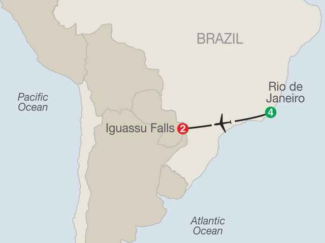RIO DE JANEIRO Sugar Loaf Mountain, [LF] Cachaça tasting and welcome dinner; sightseeing with a Local Guide; visit Corcovado Mountain and the cathedral; [LF] Samba lesson and showIGUASSU FALLS Sightseeing with a Local Guide on both sides of the falls; Ecological Jungle Train!Headsets throughout the tour