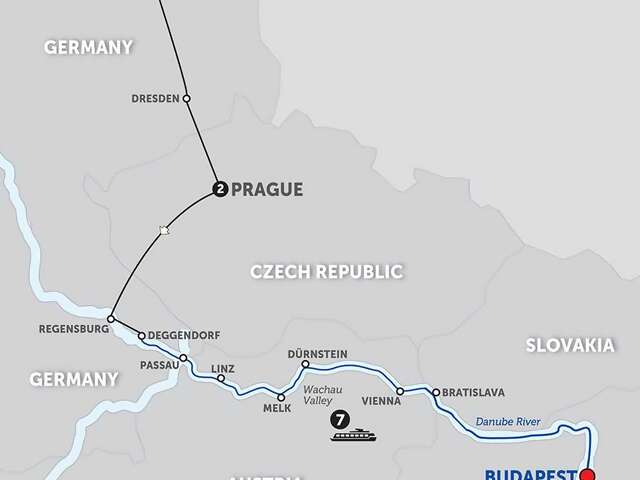 Day 1 Berlin: guided sightseeing, see the Brandenburg Gate, visit Kaiser Wilhelm Memorial ChurchDay 2 Dresden: guided walk in Dresden, visit the courtyard of the Zwinger Palace; motorcoach transfer to PragueDay 3 Prague: welcome to PragueDay 4 Prague: guided sightseeing, see the Astronomical Clock and visit Hradčany Castle groundsDay 5 Prague–Regensburg, Germany–Deggendorf (Embarkation): travel by motorcoach to Regensburg, guided sightseeing; special treat; transfer to Deggendorf; onboard welcome receptionDay 6 Passau, Austria: guided walkDay 7 Linz: guided sightseeingDay 8 Melk–Dürnstein: guided visit of the Benedictine Abbey in Melk; cruise through the Wachau Valley; guided walk in Dürnstein; wine tastingDay 9 Vienna: guided sightseeingDay 10 Bratislava: guided sightseeing, visit St. Martin’s CathedralDay 11 Budapest: guided sightseeing, see Fishermen’s Bastion and Heroes’ SquareDay 12 Budapest (Disembarkation): your vacation ends this morning