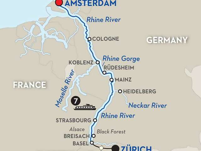Day 1-2 Lucerne: guided walkDay 3 Lucerne–Transfer to Basel (Embarkation): excursion to Mount Pilatus; onboard welcome receptionDay 4 Breisach. Excursion to the Black Forest: visit a woodcarver’s workshop:; Christmas market Day 5 Strasbourg: guided sightseeing, visit La Petite France district and the gothic cathedral; Christmas marketDay 6 Excursion to Heidelberg–Mainz: guided visit of the castle, see the Great Vat in Heidelberg; Christmas market; visit the Gutenberg Museum in Mainz; Christmas marketDay 7 Rüdesheim–Rhine Gorge: visit Siegfried’s Mechanical Musical Instrument Museum in Rüdesheim and enjoy a special treat; Christmas market; cruise through the Rhine GorgeDay 8 Cologne: guided city walk; Christmas marketDay 9 Amsterdam: canal cruiseDay 10 Amsterdam (Disembarkation): your vacation ends this morning